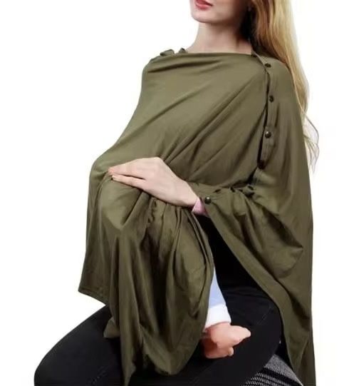 Khaki Green Snap Button Nursing Shawl