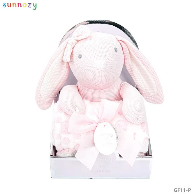 A gift-ready set with a sweet pink Bunny toy and a generously sized matching plush fleece blanket of 75cm x 75xcm.
