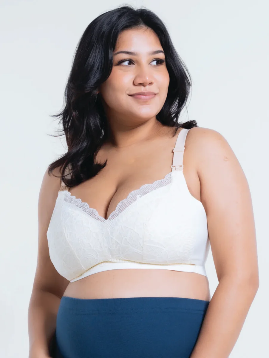Our Plus Size Lace Green Tea Extract Antibacterial Silicon Grip Top Open Nursing Bra is specially made for pregnant moms and breastfeeding moms with big busts and struggling to look for a suitable and fully covered cup. The lace detailing provides a flattering look that camouflages your post-baby body, and the middle button can be detached in seconds so you can quickly nurse your child without removing everything else you’re wearing. Made of tea fiber soft natural fabric and lined with antibacterial, this is one bra that’s good for you–and great for mom!